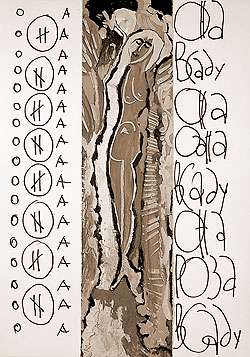 Текст – то, что мы привыкли воспринимать, как чистую информацию, передаваемую линейно и последовательно, начинает жить по новым законам, играть по правилам живописной композиции: стихотворение разрезано пополам, причём «вдоль», каждая строфа разбита на две части, в свою очередь разделённые изображением. Чтобы прочесть такие стихи, необходимо всё время переносить взгляд то вверх, то вниз – так возникает странный эффект буквально РВАНОГО ритма стиха.