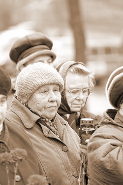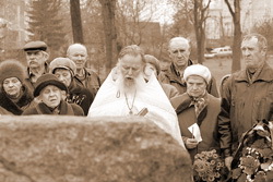 30 октября 2008 года в Пскове у камня, заложенного год назад на месте будущего памятника жертвам политических репрессий, собралось около 40 человек. Конечно, намного меньше, чем в прошлом году, когда были заняты все узкие дорожки, ведущие к этому материальному воплощению 18-летней надежды, установленному у Мироносицкого кладбища1 . Многих из пришедших я уже узнаю. Лица у людей очень запоминающиеся. Кто хоть раз видел их на этих поминальных встречах, уже вряд ли забудет.