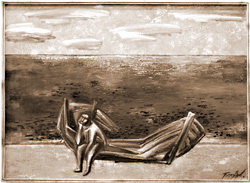 Неотступен вопрос: зачем понадобилось псковскому автору XXI столетья это «чужих причуд истолкованье», что именно, одному лишь В. В. Бердышеву присущее, должна картина выразить? Чёрный океан, чёрный блеск на волнах, чёрный окаменелый человек, каменные облака в недвижном зелёнообразном небе. Всё словно гудроном написано. В целом получается тяжёлая «сюрреальность»: всё плоско, бесцветно и страшно. Несмотря на свою изначальную видовую «окаменелость» снаружи (как под взглядом горгоны Медузы), вся картина, как целое (важная для художника и в каком-то смысле удачная) выражает тревогу и отсутствие внутреннего покоя: трудное посмертье искусства.
