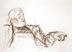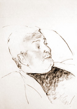 Но рисовальщице – содержательнее, сильнее – удалось поймать азартный огонь живых глаз: тот самый блеск неподдельного вдохновения, о котором я говорил выше, и который (как любовь и жизнь) нельзя ни с чем спутать, имитировать. А. Леон смогла выразить в образе Ямщикова духовный свет, который (если он есть в человеке) изнутри за десятилетия выстраивает по-новому архитектонику его лица, даёт наполненность взору.
