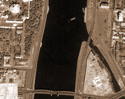 | Вверху слева – Смольный собор. Внизу справа четыре белых прямоугольника – палатки над раскопами археологов на месте предполагаемого строительства. |