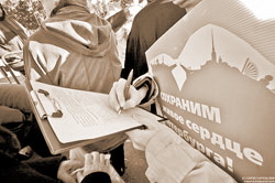 О том, что разрешением на возведение небоскреба брошен вызов всему обществу, сегодня говорят не только оппозиционные, но и весьма и весьма умеренные политики. Недаром столь успешно (и столь неожиданно для Смольного и «Газпрома») 10 октября прошел с чрезвычайным нежеланием согласованный властями «Марш в защиту Петербурга», который собрал не менее 4618 человек (именно столько людей непосредственно во время «Марша» подписали обращение к президенту Дмитрию Медведеву, требуя не допустить строительства небоскреба на Охте). Причем марш власти не согласовали, несмотря на 16 (!) представленных вариантов движения колонны. Прошел только митинг.