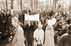 | Митинги в защиту НТВ в апреле 2001 года в Москве стали последними массовыми гражданскими митингами в начале XXI века. |