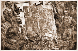 В офортах Игоря Иванюка тоже тесно. Но это какая-то другая теснота. Если бы возникла задача написать картину под названием «Фестиваль художников», то Иванюк обязательно бы с задачей справился.