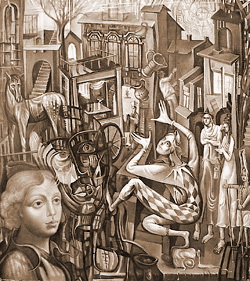 Постоянные посетители выставок знают, что самый разговорчивый псковский художник – Валентин Решетов. Он и в своих картинах необычайно разговорчив, заполняя все предоставленное пространство. Одна из самых заметных его работ – «Планы». Планов множество. Они громоздятся, их так много, что хотя бы некоторые обязательно исполнятся.