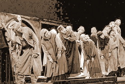 Петербургский критик Евгений Соколинский после спектакля вспомнил, как однажды приехал в Углич, туда, где в конце ХVI века убили царевича Дмитрия. И вот спустя полтысячелетия власти Углича не нашли ничего лучшего, чем устроить по этому поводу детский праздник – водили хороводы. Пожалуй, в этом было больше постмодернизма, чем в режиссерских изысканиях Владимира Рецептера, у которого «Как во городе было во Казани» Мусоргского в исполнении драматических артистов звучит так, что веришь, что в городе Казани по-другому и быть может.