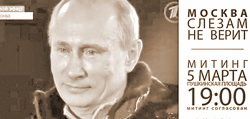 5 марта, в годовщину смерти Сталина, на следующий вечер после «победы» Путина, на Пушкинской площади в Москве на согласованный митинг под лозунгом «Москва слезам не верит» собрались недовольные результатами «выборов».
